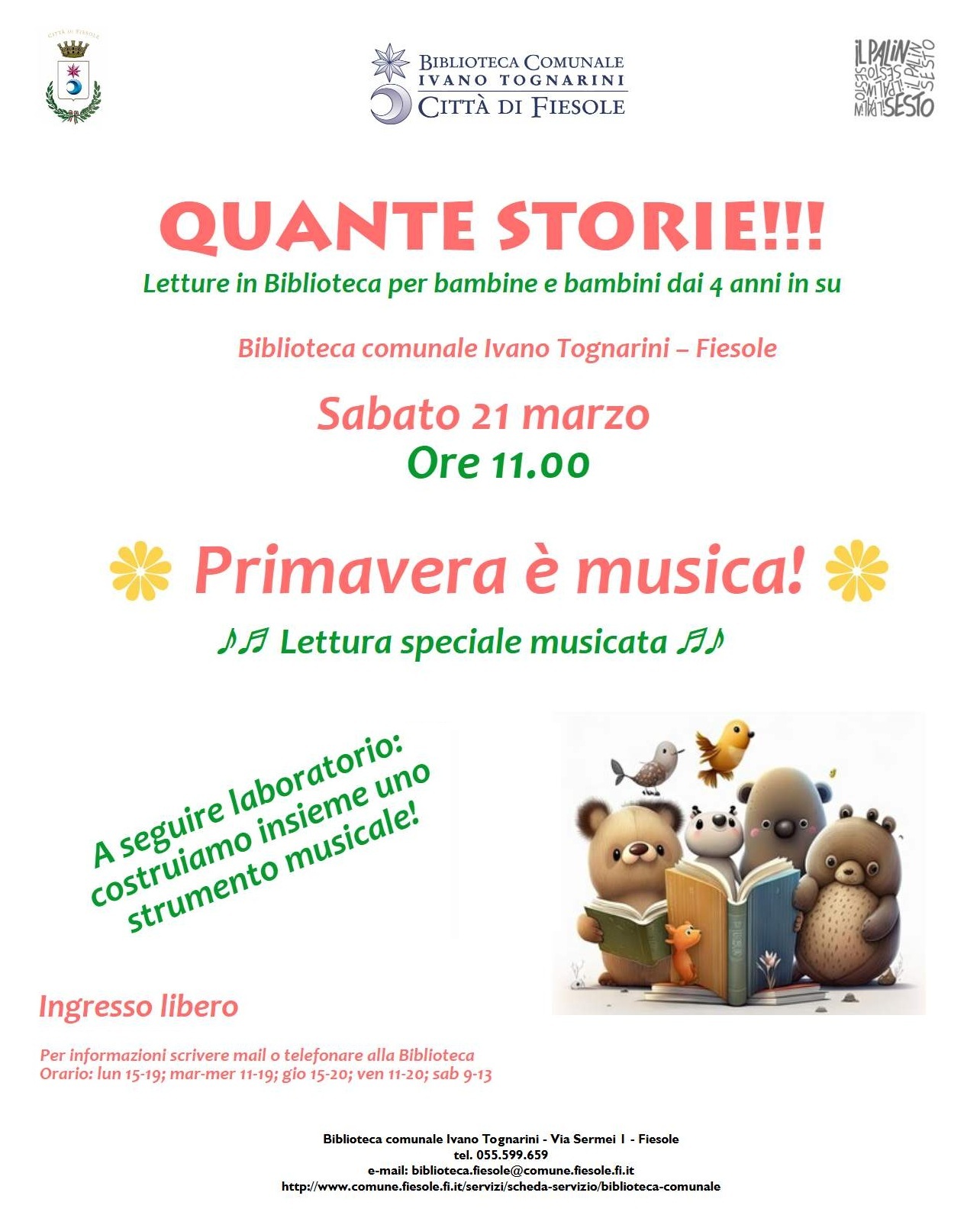 Il prossimo appuntamento è fissato per sabato 21 marzo alle 11.00 con Primavera è musica! Una lettura speciale musicata.